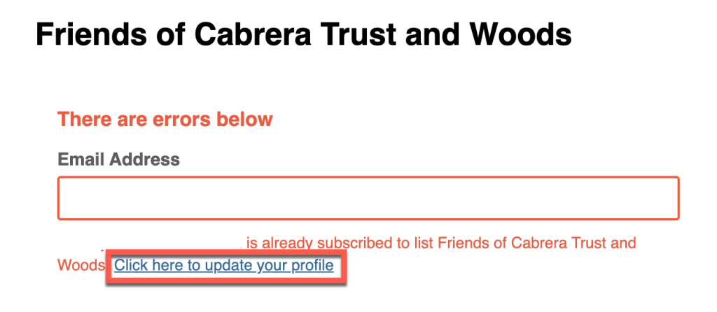 **IMPORTANT** If you have already registered, when you click on the Subscribe button on the registration form, you may see that you are already registered.